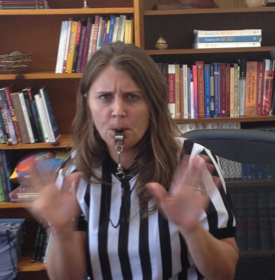 So what does it mean that I have a referee shirt and a whistle in the church office? These things were gifted to me by the Bethel College Mennonite Church youth group. It was their way of thanking me for coming to all of their sporting events through the years. They also thought I was “ok” at keeping the group in line and out of trouble. In case you’re worried, I don’t see the pastor as a referee of a church or of lives. If anything, I see myself as more of a crossing guard, someone who stands in the middle of many different intersections and hopefully directs traffic so that people stay safe and connected.