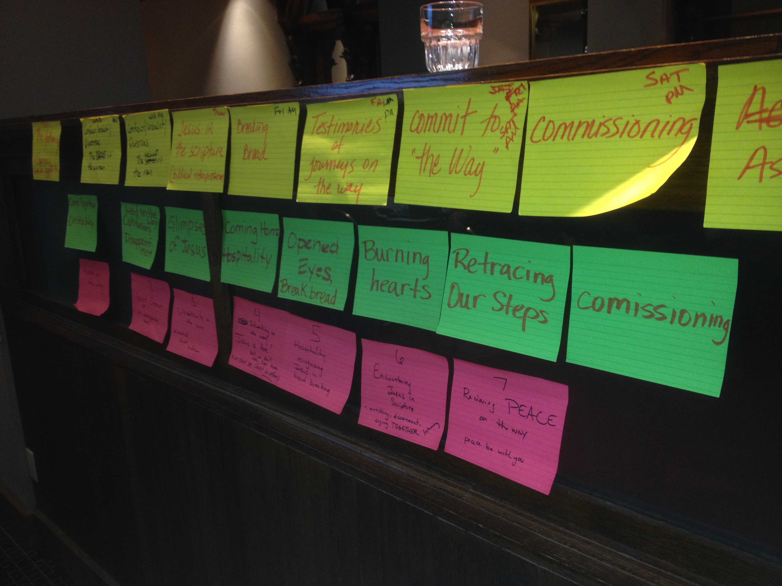 Many ideas, opinions, and expectations have been expressed. This picture perhaps says it best. (I’ve never planned worship with post-it notes but I think I might have to start!) As the day wore on and as my patience wore thin at times, I found myself singing “Peace before us.” And then, wouldn’t you know, we all sang it!